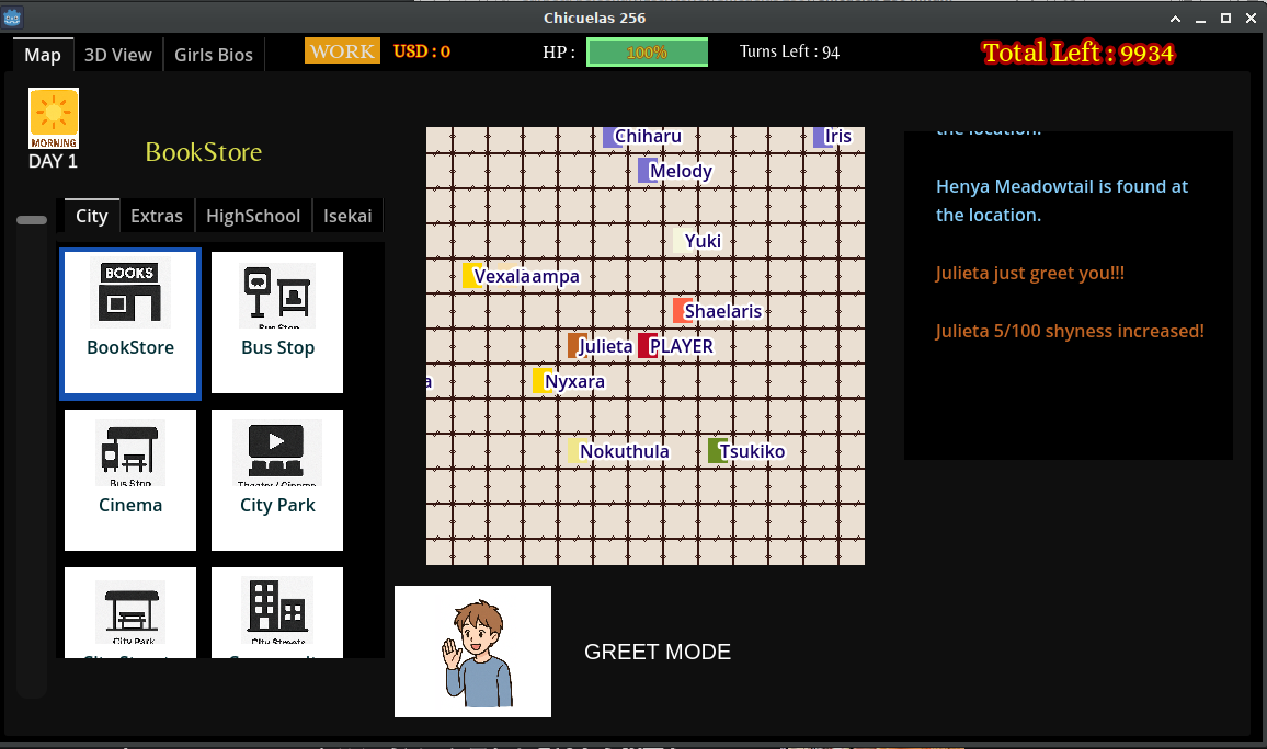 The game is inspired by games like dating simulators and roguelikes, so the goal is to explore the city and try to capture girls into your harem.